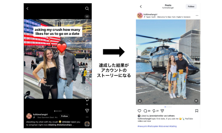 このトレンドの本質は、いいねを「評価」ではなく「行動」に変えている点にある。通常、いいねは受動的なリアクションで終わる。しかしこのフォーマットでは、いいねが「結果を変える手段」になる。